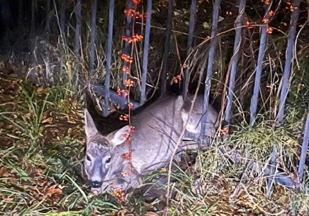 У Трускавці сарна застрягла у металевій огорожі